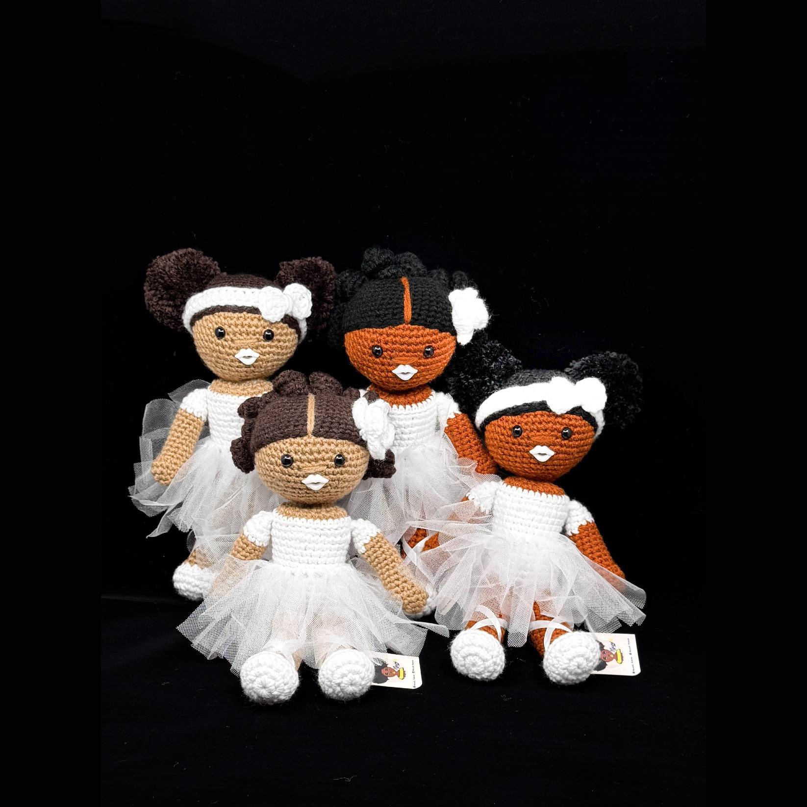 These lovely Ballet Black ballerina dolls are hand made by a lady in Kenya for us here at BB. For our 25th Anniversary she had made us a small amount of this Limited Edition version in white tutus and shoes.